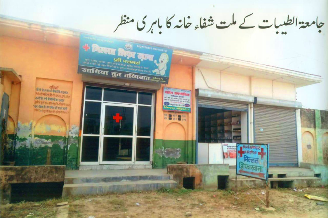 ملی تعلیمی ٹرسٹ کے زیر اہتمام جامعۃ الطیبات میں شفاخانہ قائم کیا گیا ہے جس میں جامعہ کی طالبات کے ساتھ ساتھ قرب و جوار کے لوگوں کا سستا و رعایت کے ساتھ علاج کیا جارہا ہے۔ کیونکہ یہ علاقہ شہر کا نو آباد علاقہ ہے اور عمومی طور پر یہاں علاج و معالجہ کا کوئی بہتر نظم نہیں ہے اس حاجت کے پیش نظر ملت شفاخانہ قائم کیا گیا ہے تاکہ غریب عوام کا رعایتی و سستا علاج کیا جا سکے ۔ بفضلہ تعالیٰ فی الحال روزانہ تقریباً ۵۰ ؍مریضوں کا علاج کیا جا رہاہے۔باری تعالیٰ کا فرمان ہے ــنیکی اور تقویٰ کے کاموں پر ایک دوسرے کا تعاون کروــ یہ بھی ایک کار خیر ہے۔شفاخانہ کے فیض کو مزید عام کرنے کے لئے ایک ایمبولینس کی ضرورت ہے جس کے ذریعہ جامعہ اور قرب و جوار کے مریضوں کو نرسنگ ہوم اور اسپتال منتقل کیا جاسکے۔ اہل خیر حضرات سے توجہ کی درخواست ہے۔
